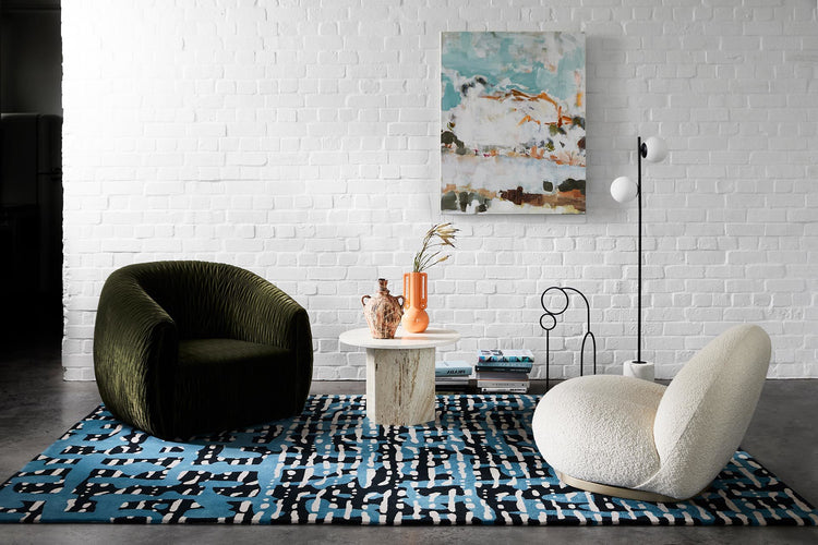 Their new collection COMMUNITY is a reflection of their decades of experience creating custom rugs, and desire to create innovative new designs. COMMUNITY was designed during the Covid-19 lockdown, and explores the changing environments of our designers during this time and the sense of community created by the pandemic. The collection contrasts classic designs of home life with the “new normal” of virtual communication, featuring glitch motifs, mark making patterns and deco references.