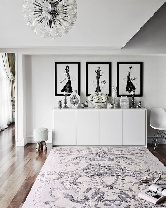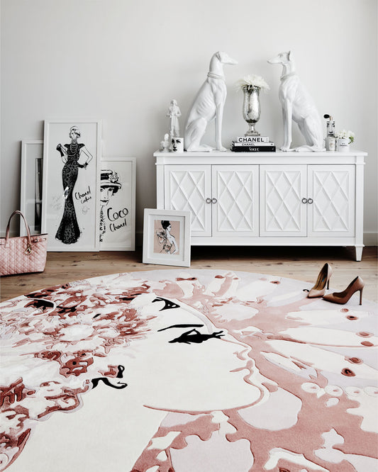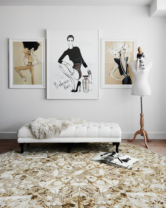 Megan has translated her signature penmanship in two collections - The Vintage Jewels and The Hidden Palace. “Standing here with the finished rugs under my toes, they are just as I imagined them to be; three Illustrations brought to life by the finest artisans in the most beautiful wools, ready to fill a room with all the same inspiration that went into creating them.”