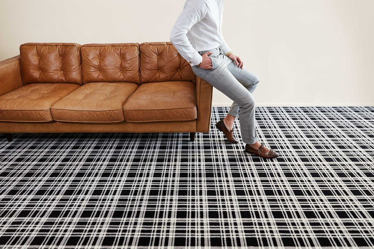 MR Carpet is a collection of monochromatic Axminster carpet from our in-house experts Johnathon Murray and Shaun Russell. Exploring the latest trends on geometric wall-to-wall carpeting, the collection has a signature menswear-inspired twist, featuring masculine prints in a high quality, versatile product. MR Carpet is suitable for a wide range of projects, from residential to large scale commercial fit outs, and can be custom coloured to suit any space.