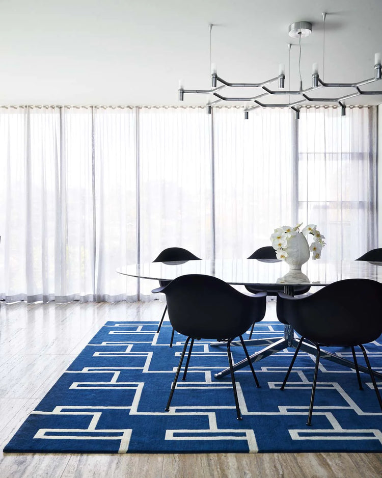 New Modern is the second collection by Greg Natale, and features the bold, sophisticated patterns and striking graphic designs for which Natale is known. “MIAMI's minimalist blue and white pattern feels a little bit nautical and a little bit urban, perfect for contemporary coastal style,” says Greg Natale.