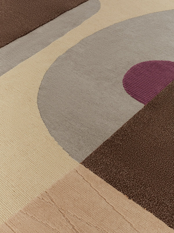 ROZZO is composed of large-scale asymmetrical shapes pieced together like a mural. The design draws inspiration from the textured reliefs and carved concrete panels of mid-century Brutalism, where simplified forms were layered and incised to create depth, rhythm, and shadow.